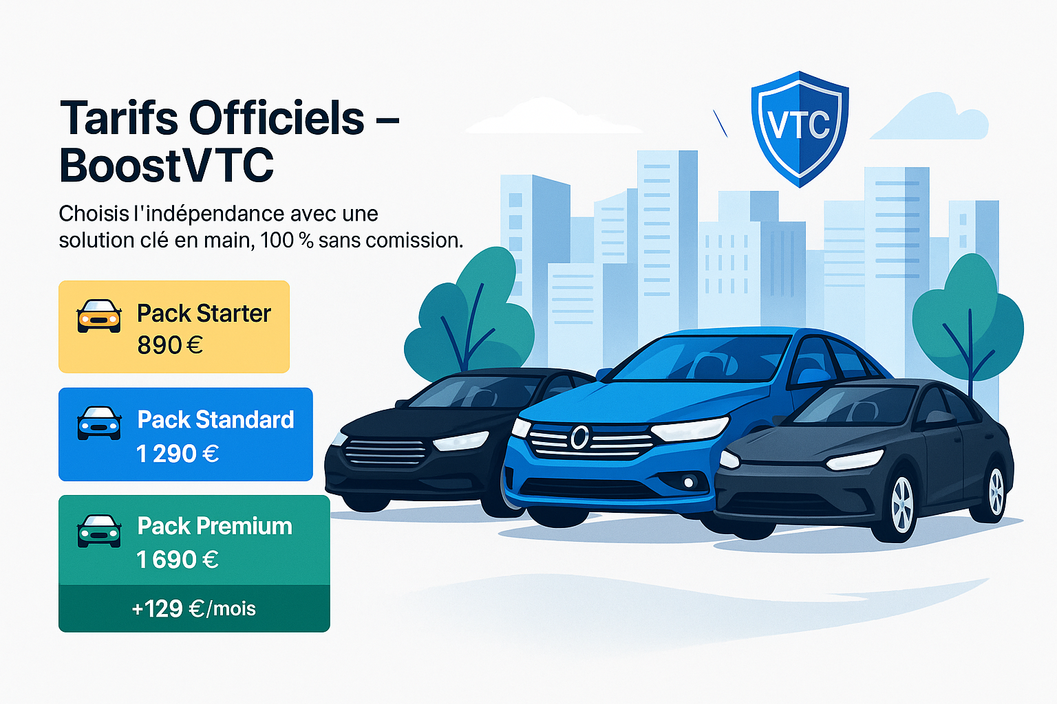 Chez BoostVTC, pas de commissions, pas d’intermédiaires. Vous devenez propriétaire d’un site optimisé pour recevoir des réservations directes, améliorer votre image de marque et augmenter votre chiffre d’affaires VTC. Une tarification claire, sans surprise. Pensée pour rentabiliser votre site rapidement.